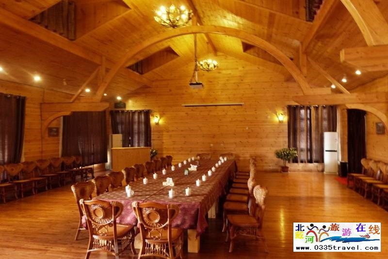 北戴河英倫國(guó)際馬術(shù)俱樂部酒店有餐廳、咖啡間,燒烤露臺(tái)、會(huì)議中心和歐式木制別墅10余座,房間衛(wèi)生整潔、設(shè)施齊全,會(huì)給游客一個(gè)全新的木質(zhì)房屋居住體驗(yàn)。